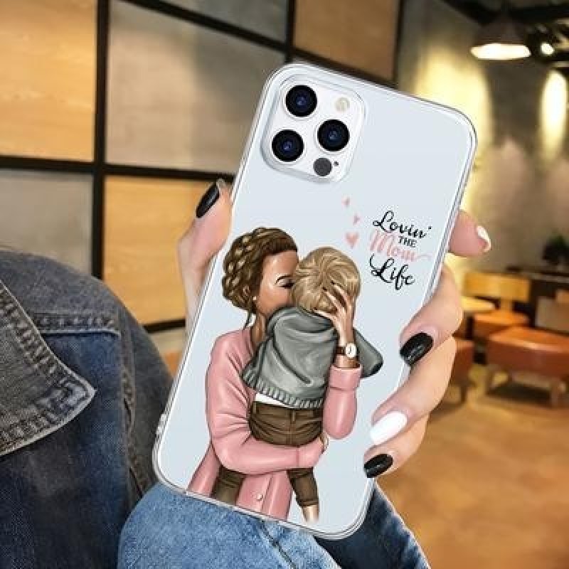 Черный Коричневый Ребенок Мама Девочка Волосы Мягкий TPU Чехол для iPhone 13 12 11 XS Pro Max XR X 7